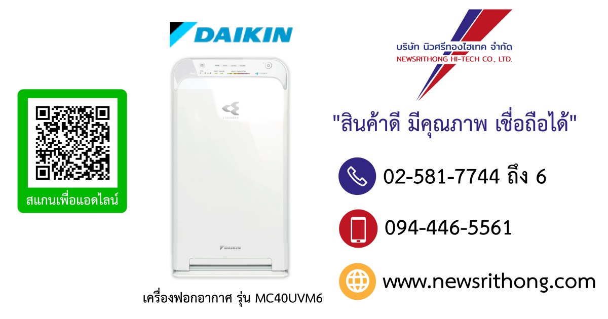 เครื่องฟอกอากาศไดกิ้น ฟอกอากาศภายในเครื่องด้วย Streamer ยับยั้งเชื้อไวรัส แบคทีเรีย สารก่อภูมิแพ้ และกลิ่น พร้อมฟิลเตอร์ HEPA แบบไฟฟ้าสถิต ยับยั้งฝุ่นขนาดเล็ก 0.3 ไมครอนได้ถึง 99.97% ครอบคลุมพื้นที่ 31 ตารางเมตร