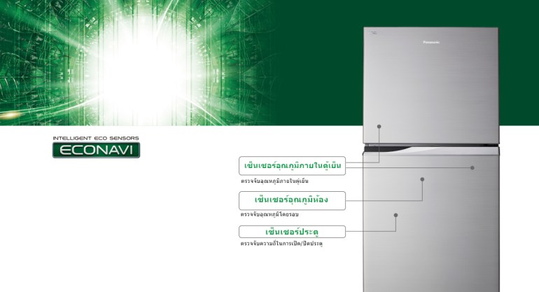 เซ็นเซอร์ ECONAVI 3 ชนิดตรวจจับและวิเคราะห์สภาพการใช้งานเพื่อคงความเย็นที่ดีที่สุดและหลีกเลี่ยงการสิ้นเปลืองพลังงาน Inverter ใช้ระบบวิเคราะห์ ECONAVI นี้ เพื่อปรับความถี่ของการหมุนมอเตอร์และปรับระบบทำความเย็นให้มีประสิทธิภาพเหมาะสมที่สุดเพื่อประหยัดพลังงาน