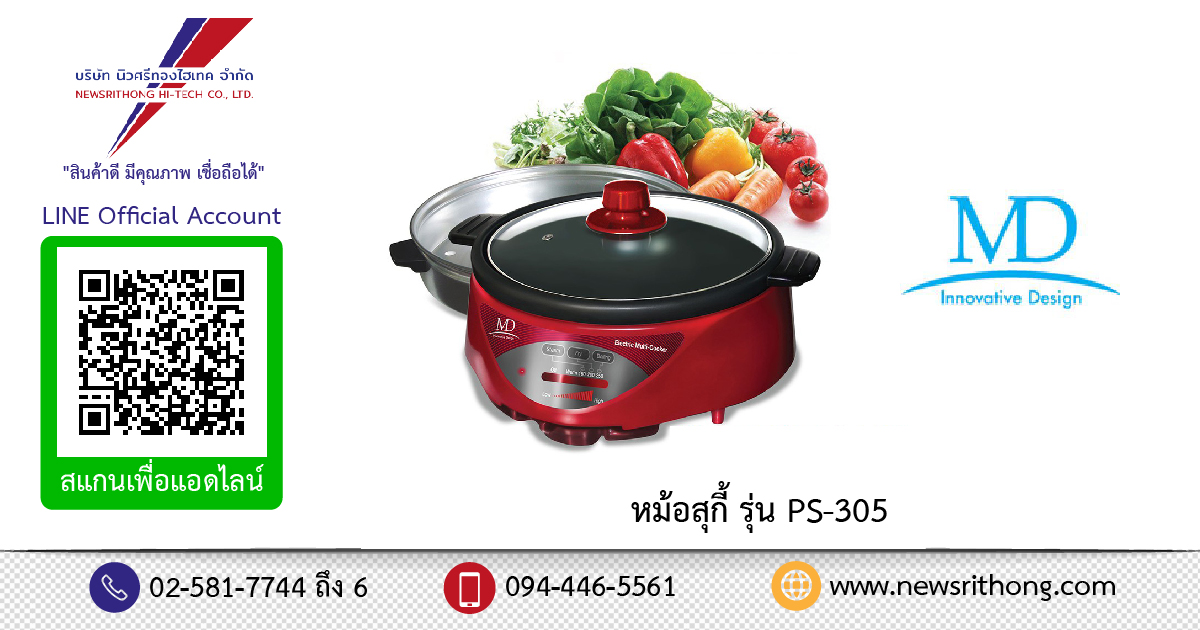 รูปทรงทันสมัย กระทะชั้นในเคลือบด้วย Non Stick ทำให้อาหารไม่ติดกระทะ และควบคุมความร้อนด้วย Thermostat