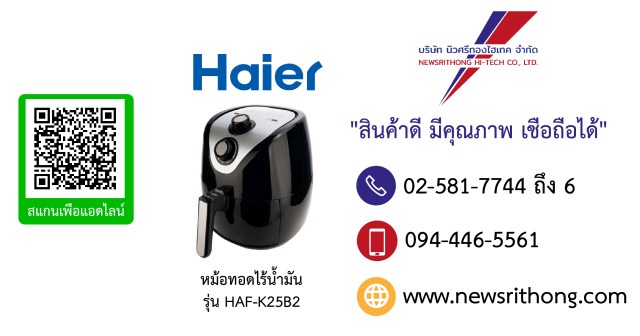 หม้อทอดไร้น้ำมัน Haier รุ่น HAF-K25B2 ความจุ 2.5 ลิตร