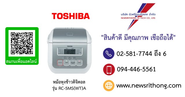 หม้อหุงข้าวดิจิตอล Toshiba 0.54 ลิตร รุ่น RC-5MS(WT)A