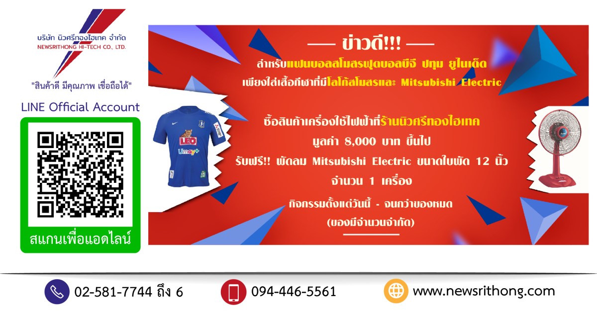 รับฟรี!! พัดลม Mitsubishi Electric ขนาดใบพัด 12 นิ้ว จำนวน 1 เครื่อง