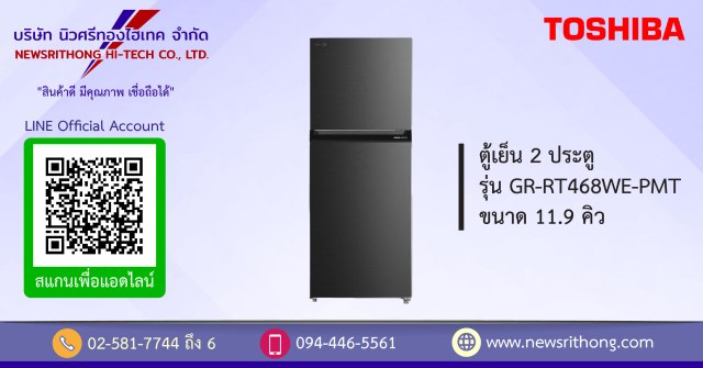 ตู้เย็น 2 ประตู Toshiba รุ่น GR-RT468WE-PMT ขนาด 11.9 คิว