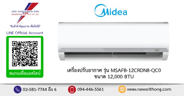 เครื่องปรับอากาศ Midea รุ่น MSAFB-12CRDN8-QC0 ขนาด 12,000 BTU