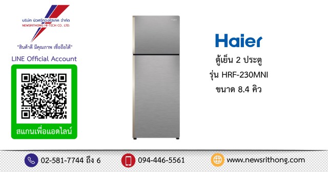 ตู้เย็น 2 ประตู Haier รุ่น HRF-230MNI ขนาด 8.4 คิว