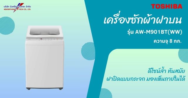 เครื่องซักผ้าฝาบน Toshiba รุ่น AW-M901BT(WW) ความจุ 8 กก.