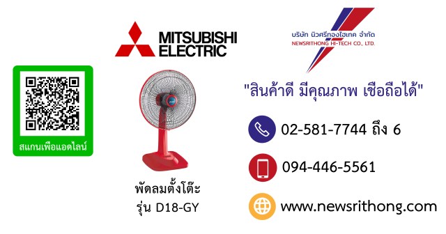 พัดลมตั้งโต๊ะ Mitsubishi รุ่น D18-GY ขนาดใบพัด 18 นิ้ว กันยายน 16, 2019เมษายน 18, 2020