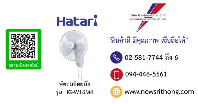 พัดลมติดผนัง Hatari รุ่น HG-W16M4 ขนาดใบพัด 16 นิ้ว ตุลาคม 20, 2019เมษายน 5, 2020