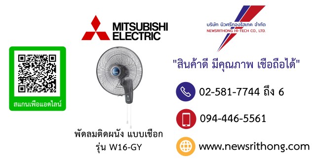พัดลมติดผนังแบบรีโมทคอนโทรล Mitsubishi รุ่น W16-RY ขนาดใบพัด 16 นิ้ว ตุลาคม 23, 2019เมษายน 18, 2020