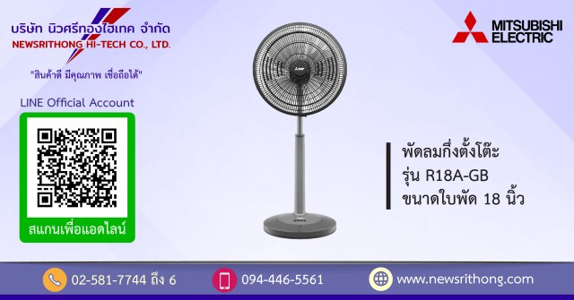 พัดลมกึ่งตั้งโต๊ะ Mitsubishi Electric รุ่น R18A-GB ขนาดใบพัด 18 นิ้ว พ.ค. 25, 2022