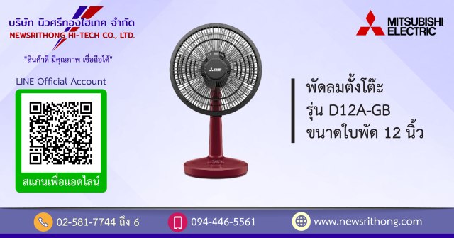 พัดลมตั้งโต๊ะ Mitsubishi Electric รุ่น D12A-GB ขนาดใบพัด 12 นิ้ว ตุลาคม 9, 2022