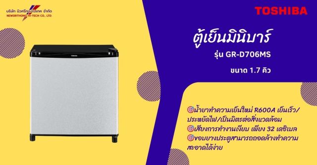 ตู้เย็นมินิบาร์ Toshiba รุ่น GR-D706MS ขนาด 1.7 คิว