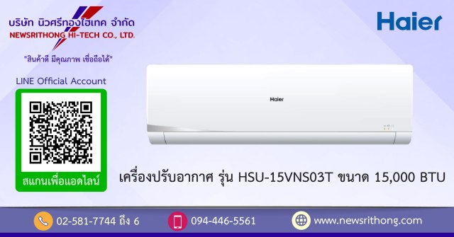 เครื่องปรับอากาศ Haier รุ่น HSU-15VNS03T ขนาด 15,000 BTU