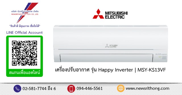 เครื่องปรับอากาศ Mitsubishi Electric รุ่น Happy Inverter | MSY-KT13VF ขนาด 12,283 btu มิถุนายน 20, 2021มิถุนายน 20, 2021