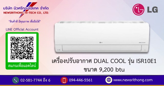 เครื่องปรับอากาศ LG DUAL COOL รุ่น ISR10E1 ขนาด 9,200 Btu