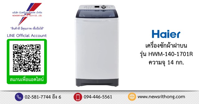 เครื่องซักผ้าฝาบน Haier รุ่น HWM-140-1701R ความจุ 14 กก.