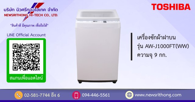 เครื่องซักผ้าฝาบน Toshiba รุ่น AW-J1000FT(WW) ความจุ 9 กก.