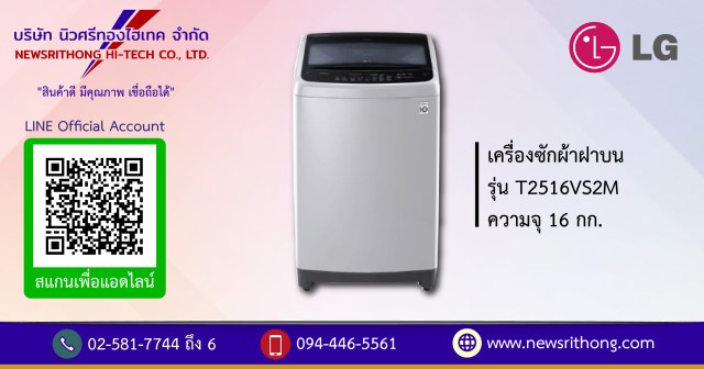 เครื่องซักผ้าฝาบน LG รุ่น T2516VS2M ความจุ 16 กก.