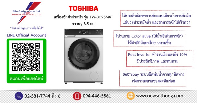 เครื่องซักผ้าฝาหน้า Toshiba รุ่น TW-BH95M4T ความจุ 8.5 กก.