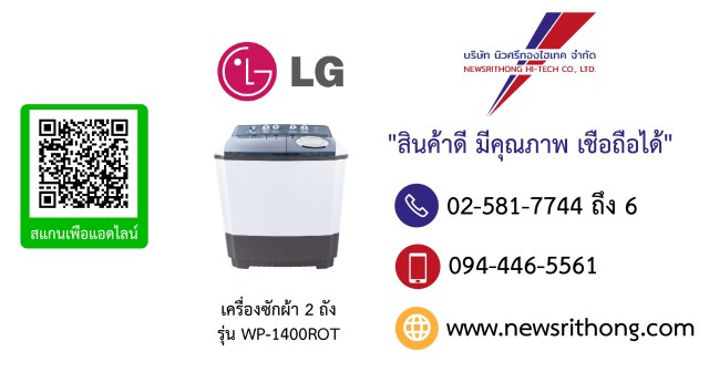 เครื่องซักผ้า 2 ถัง LG รุ่น WP-1400ROT ความจุ 11 กก.